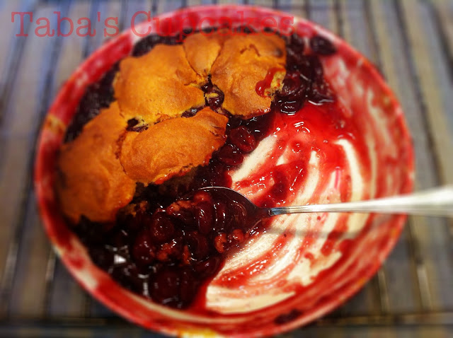 Repartimos la mezcla sobre las cerezas en cucharadas y pasamos 25/30 minutos en el horno.